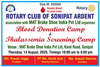Rotary Club Sonipat Ardent has organized a blood donation and Thala. . .